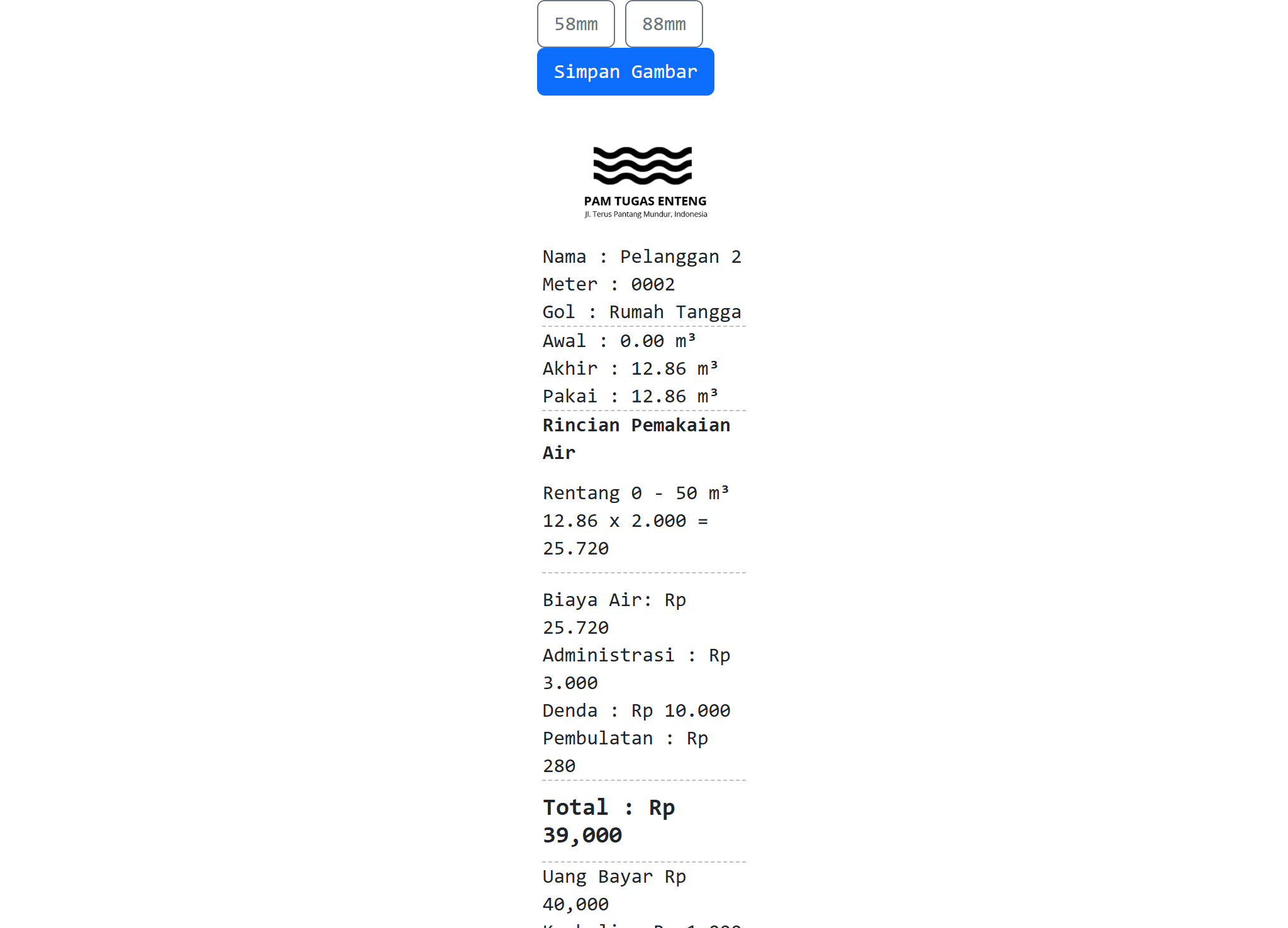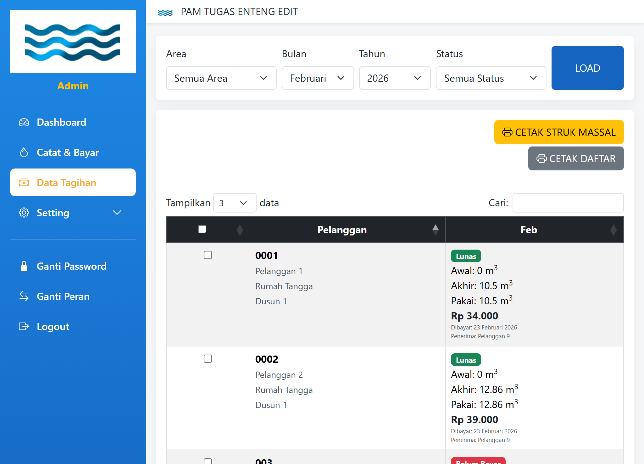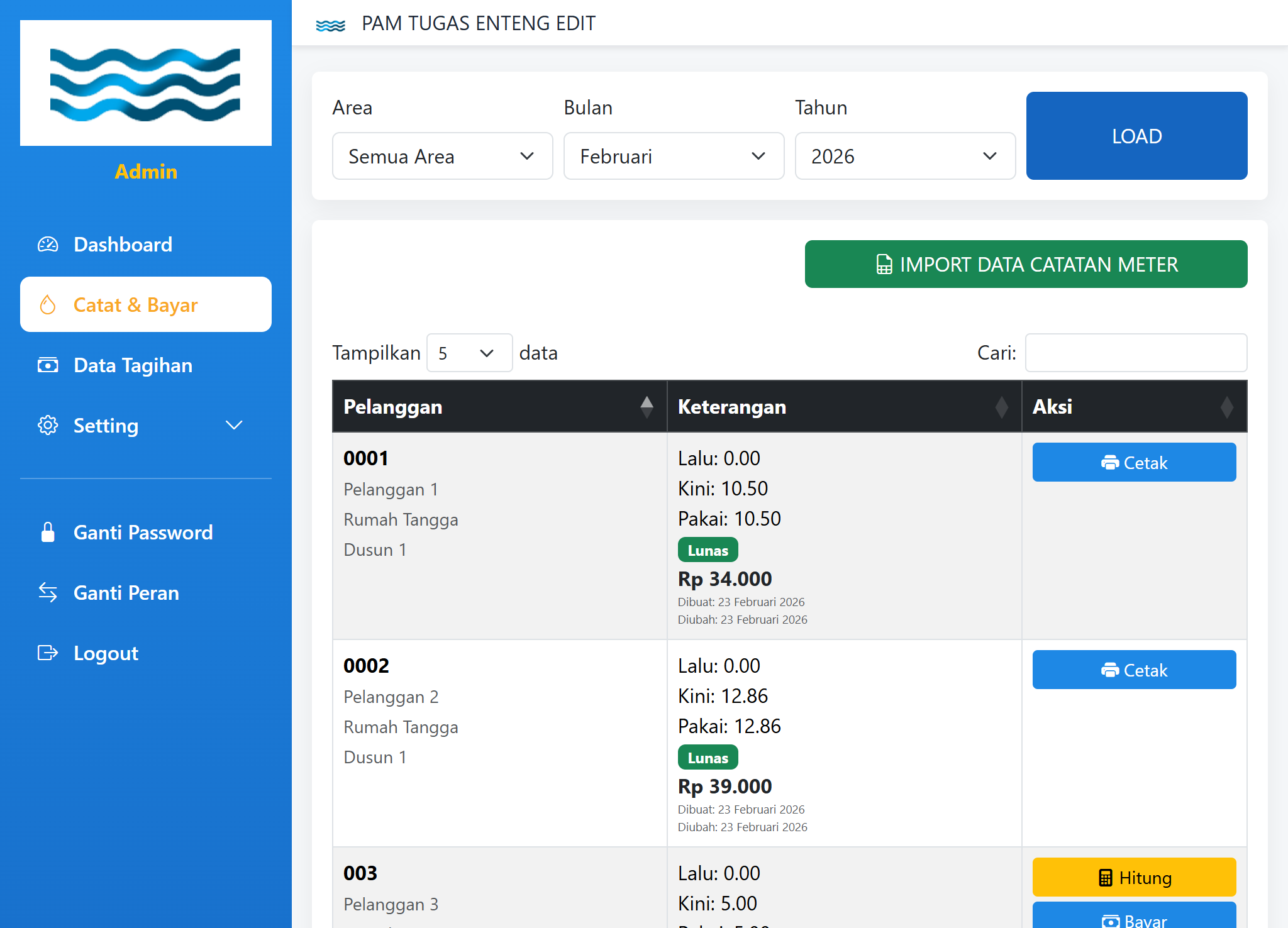 Solusi mudah untuk mencatat meteran air, menghitung tagihan pelanggan, dan membuat laporan penggunaan air. Jumlah pelanggan unlimited !!!